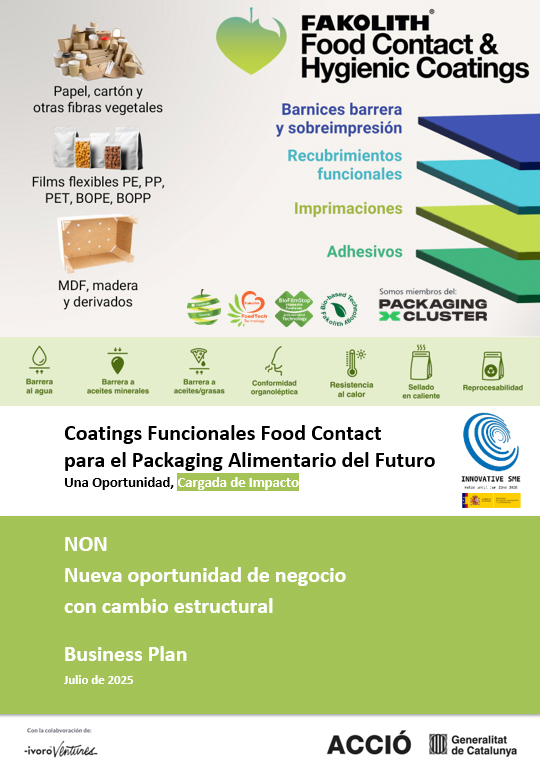 Fakolith ha sido beneficiaria del programa NON de ACCIÓ, una convocatoria altamente competitiva que impulsa nuevas oportunidades de negocio para pymes innovadoras. Con este apoyo, la compañía avanza en el desarrollo de coatings funcionales de contacto alimentario para packaging, una apuesta estratégica que permitirá consolidar y hacer crecer su planta en Tortosa durante los próximos años, reforzando su posición pionera en el sector de recubrimientos para la industria alimentaria y sanitaria.