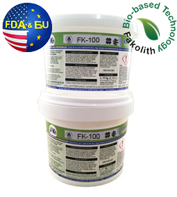 RESUMEN DE PRODUCTO: FK-100 FoodGrade es recubrimiento epoxi alimentario de alta resistencia, 100% sólidos y parcialmente biobasada de 2 componentes, y con doble certificación para el contacto directo con alimentos, la europea UE 10/2011 y la americana FDA 21 CFR 175.300. Pintura de altas prestaciones y alto espesor, low Voc, bajo olor biobasado, acabado brillo, con ensayos de marcado CE y con testadas excelentes resistencias anticorrosivas y fisicoquímicas en su categoría. Especialmente indicado para la protección, renovación y pintado de superficies en contacto directo, ocasional o indirecto con alimentos, bebidas, aguas para elaboración de alimentos y aguas potables.